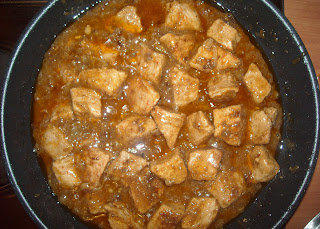 Лук тушим на сковороде (можно и в кастрюле ) в растительном масле до румянца.В лук выкладывается мясо и жарим минут 15 при частом помешивании.
