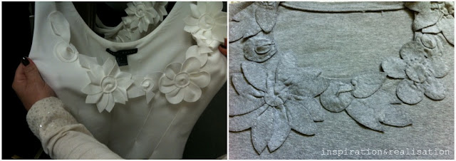 This way, the flowers will end up being thicker, and dimensional... note that pressing the shirt after a wash you'll "squeeze" the flowers a bit, but while you'll wear it, these flowers will get back in their pretty 3D shape!