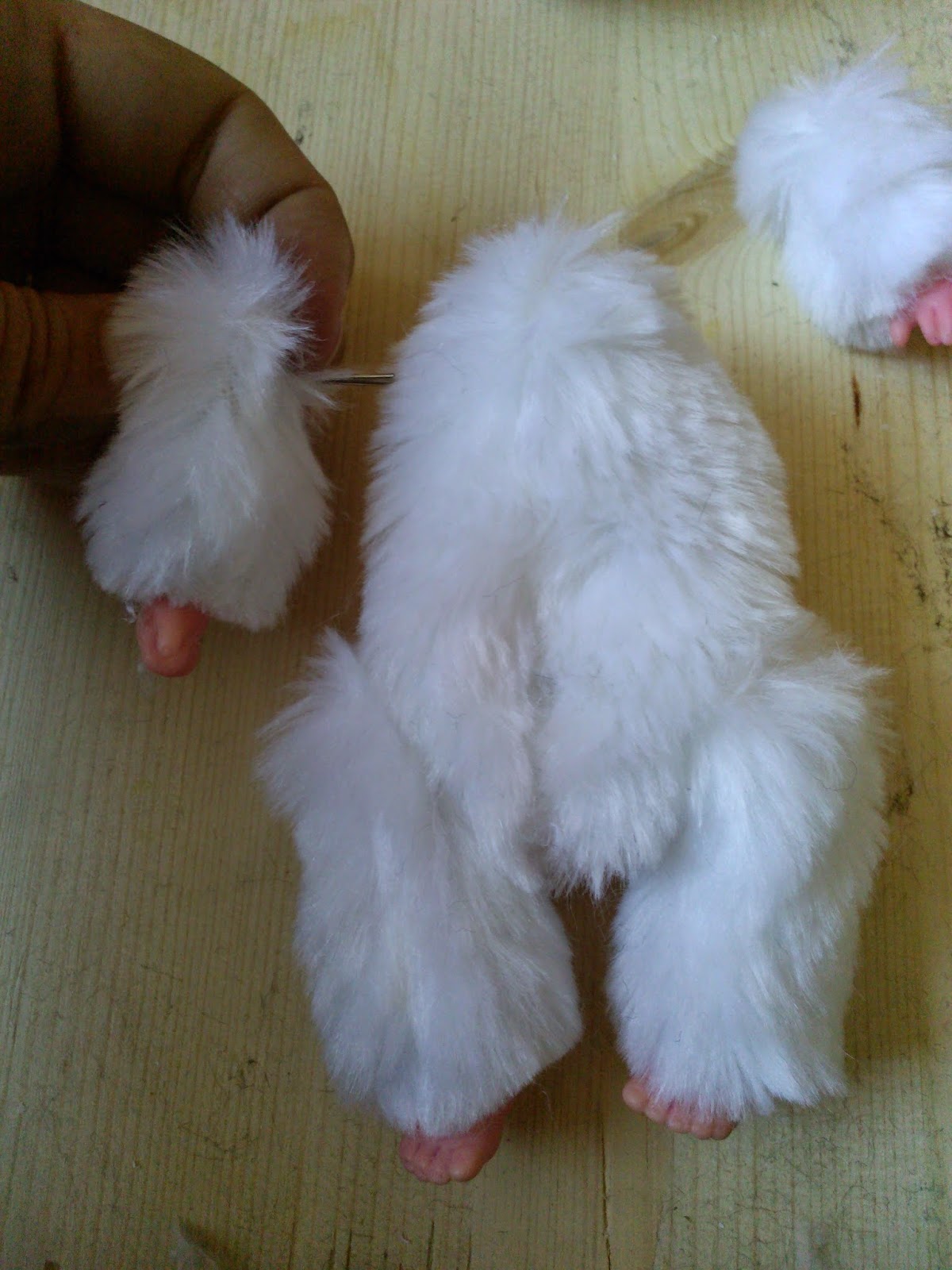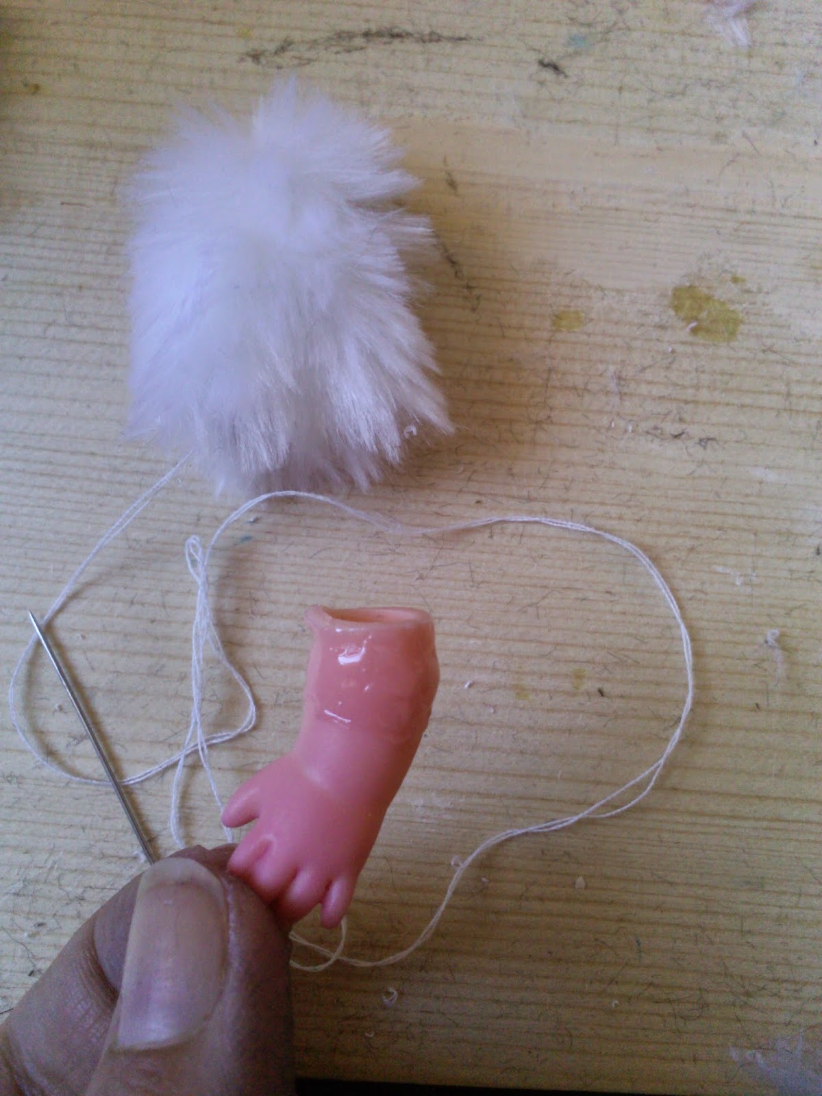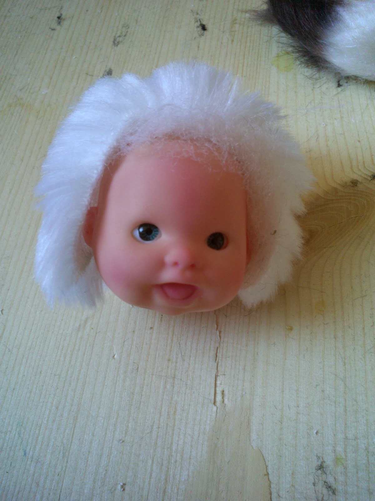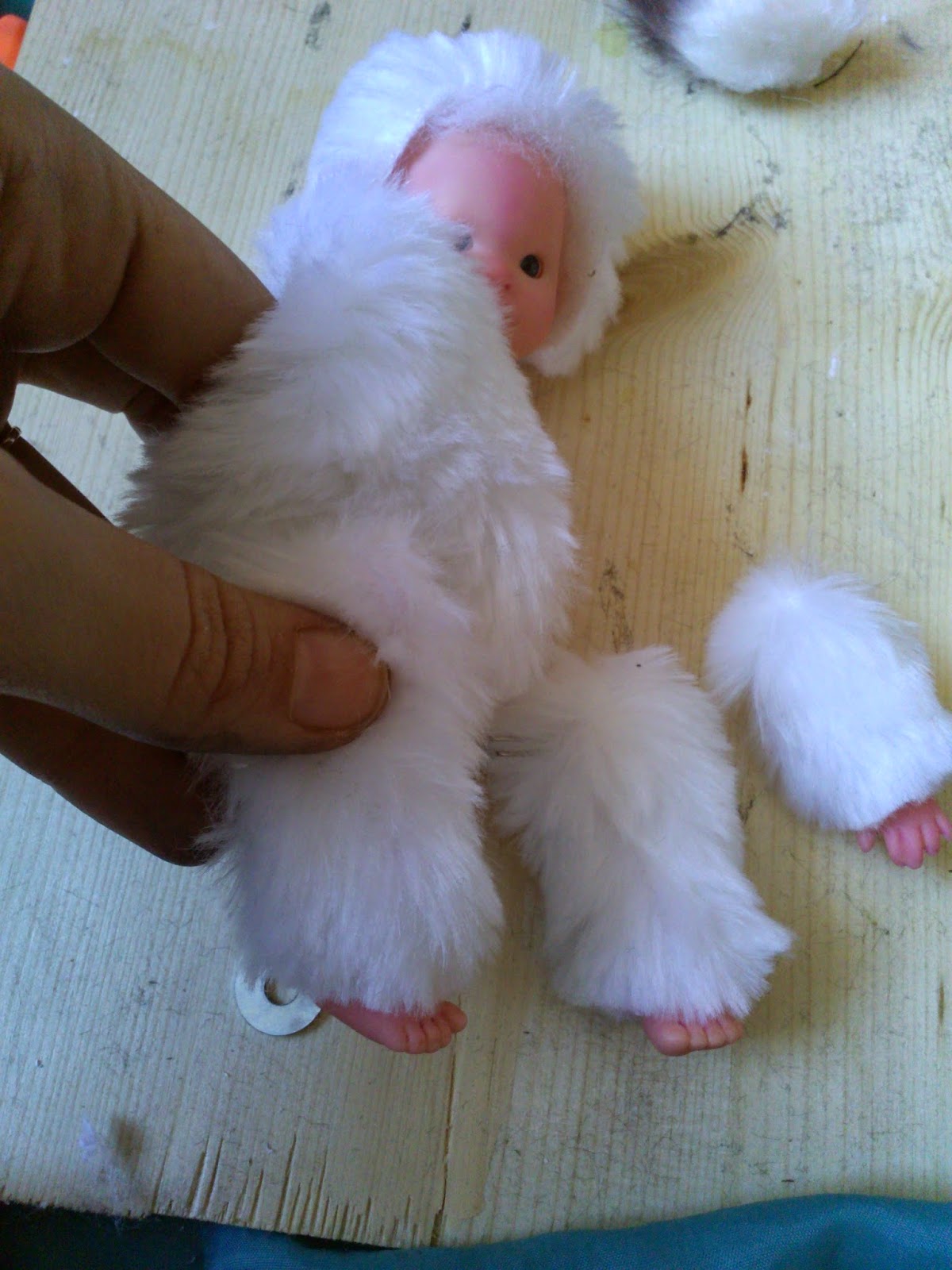 Теперь перейдем к пупсику... я отрезала пополам ручки и ножки, а так же  часть шеи для крепления с головой....и ушки, они мешали при склеивании детали головы  (я не стала это фотогрофировать, как то жутковато было)