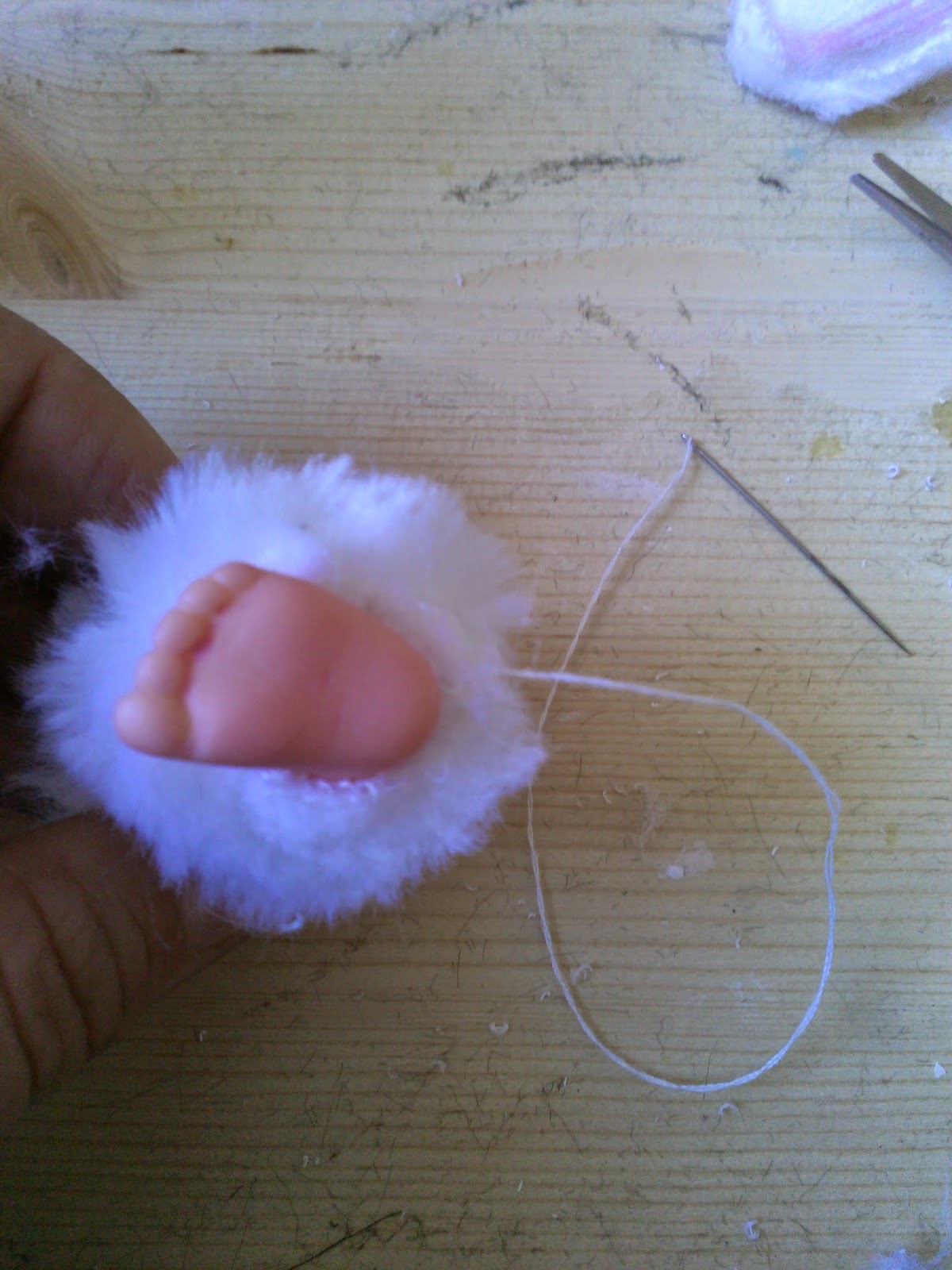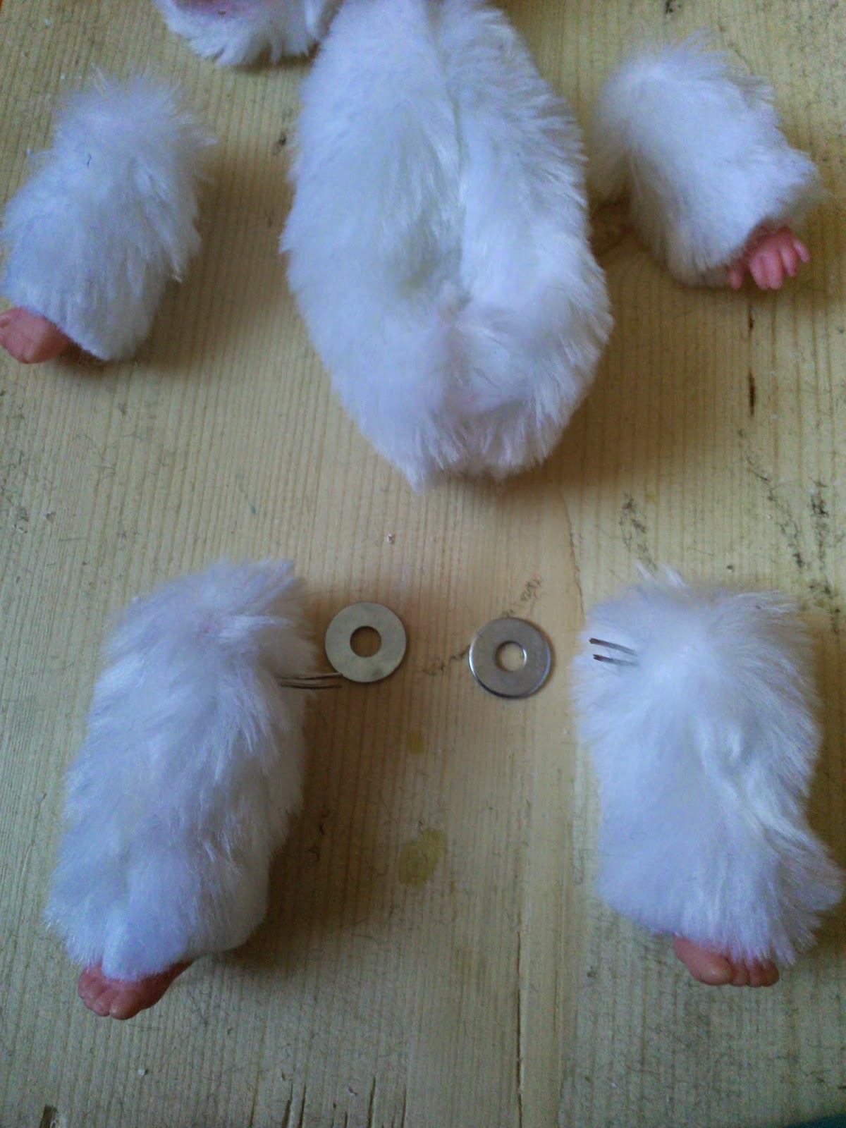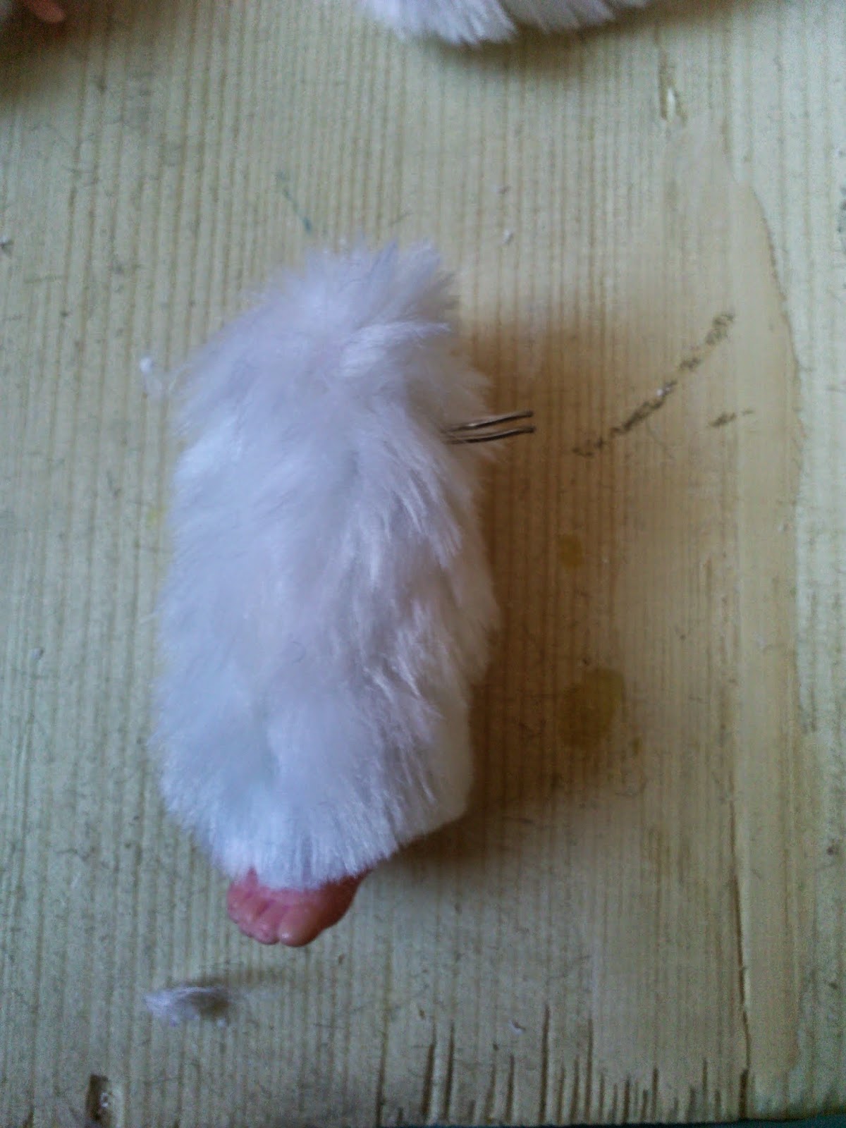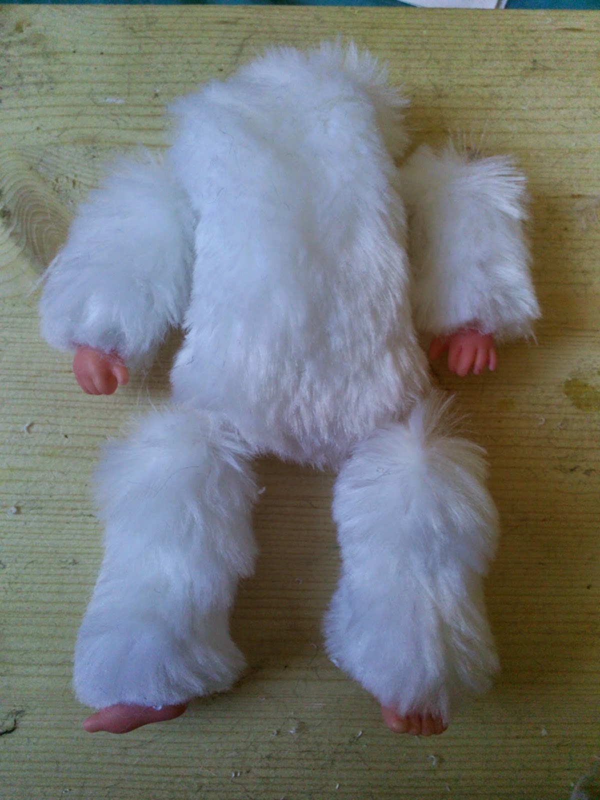 Теперь перейдем к пупсику... я отрезала пополам ручки и ножки, а так же  часть шеи для крепления с головой....и ушки, они мешали при склеивании детали головы  (я не стала это фотогрофировать, как то жутковато было)