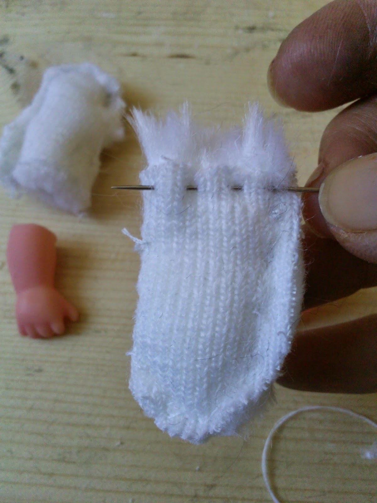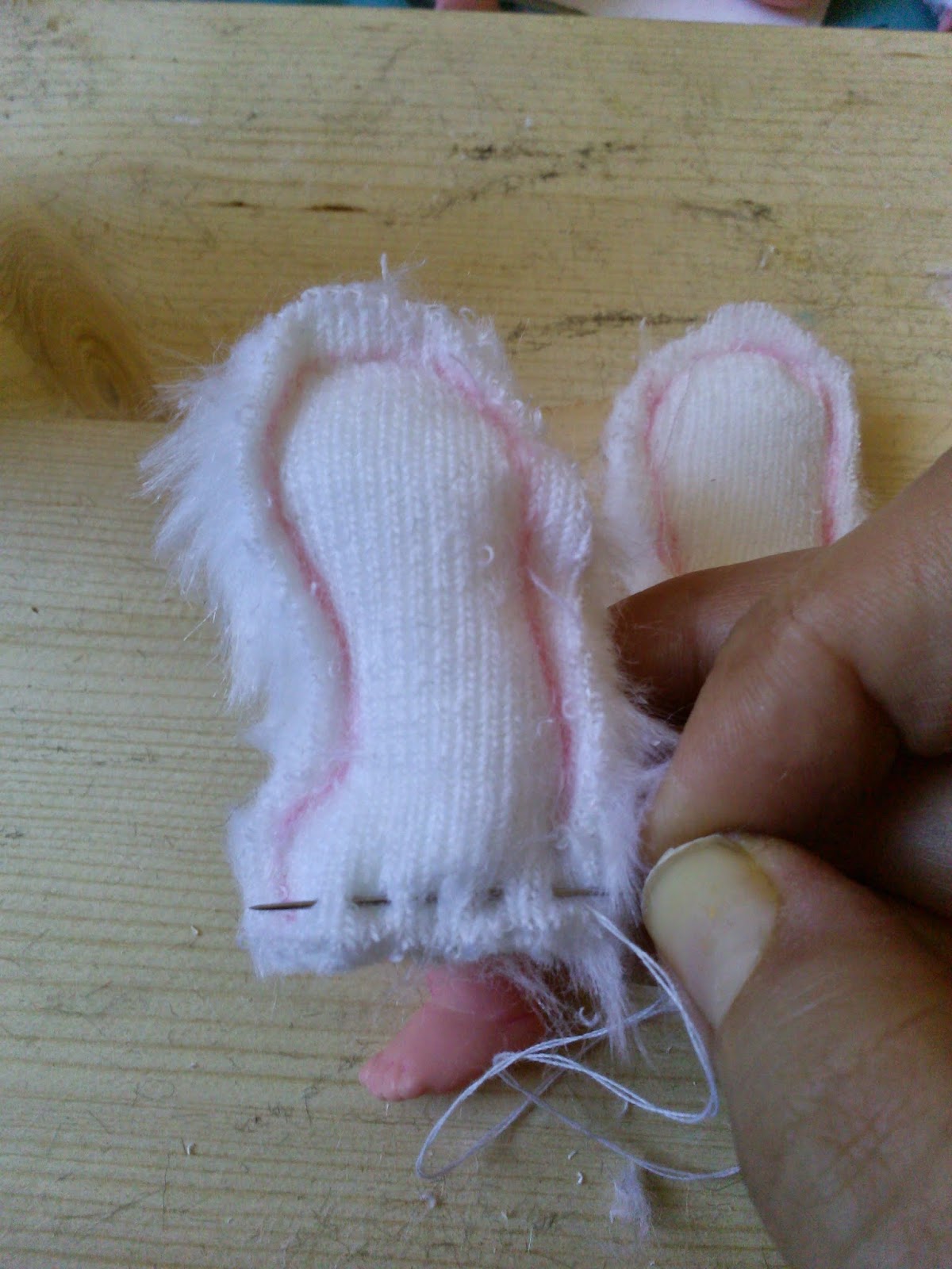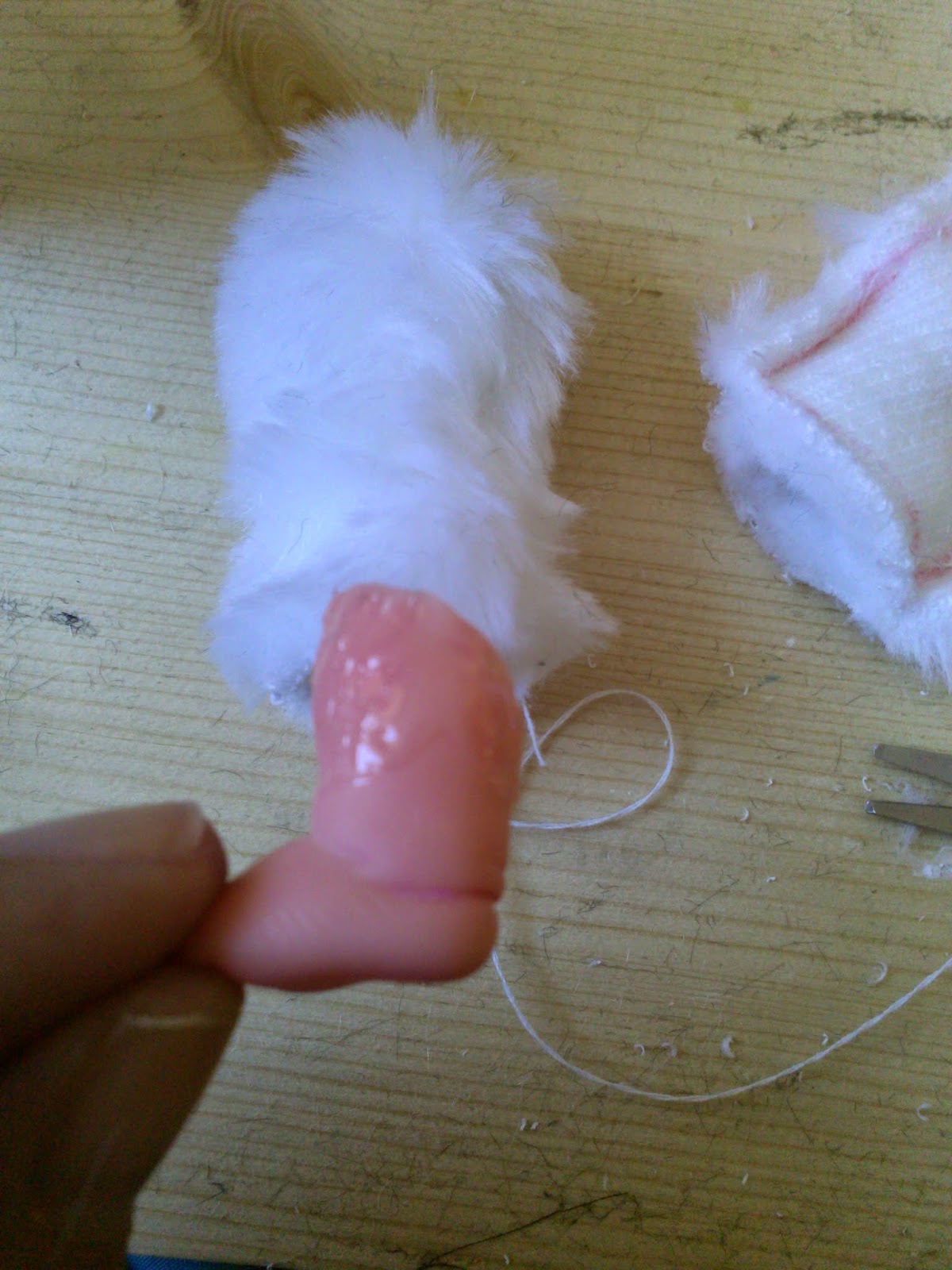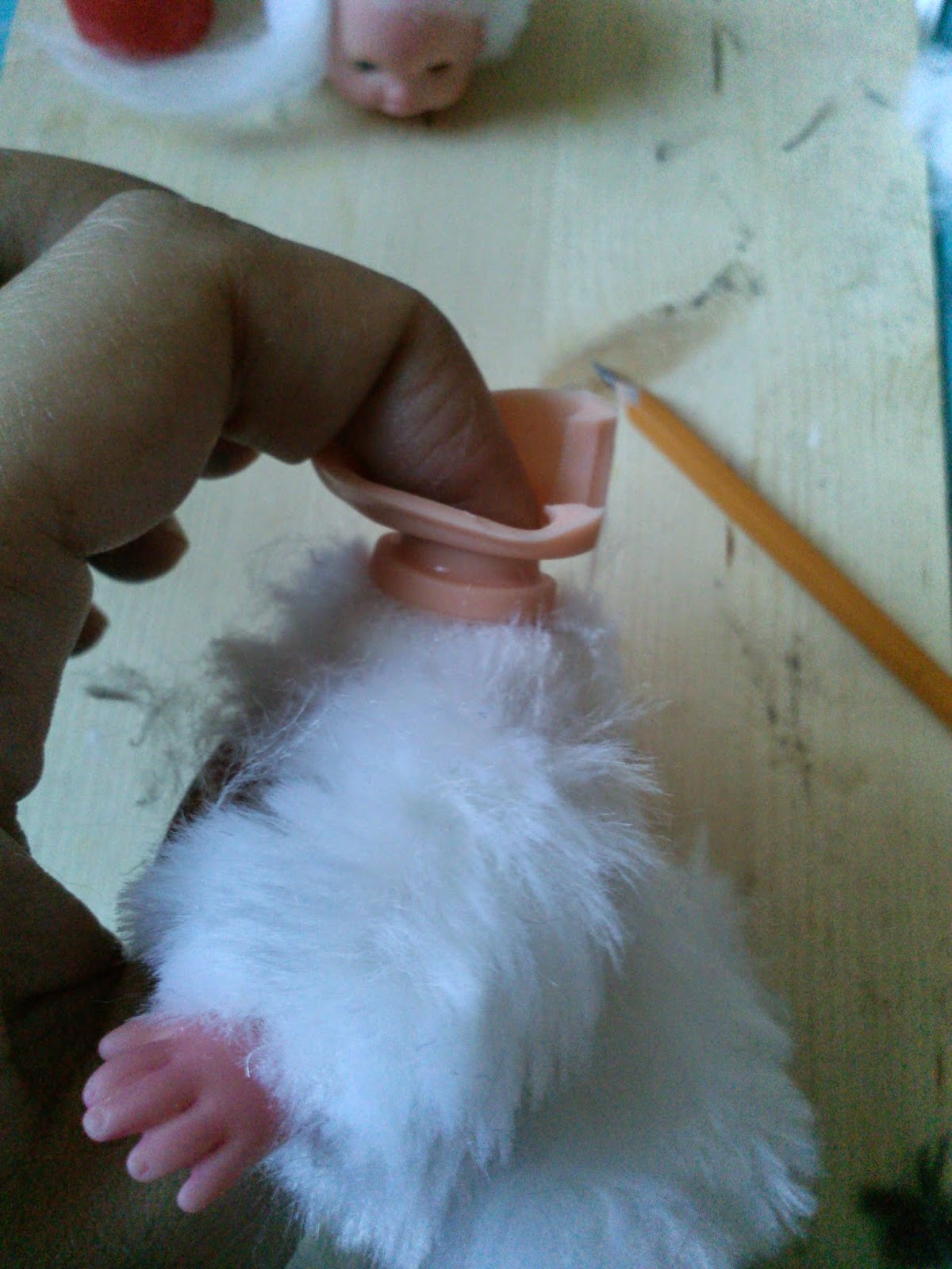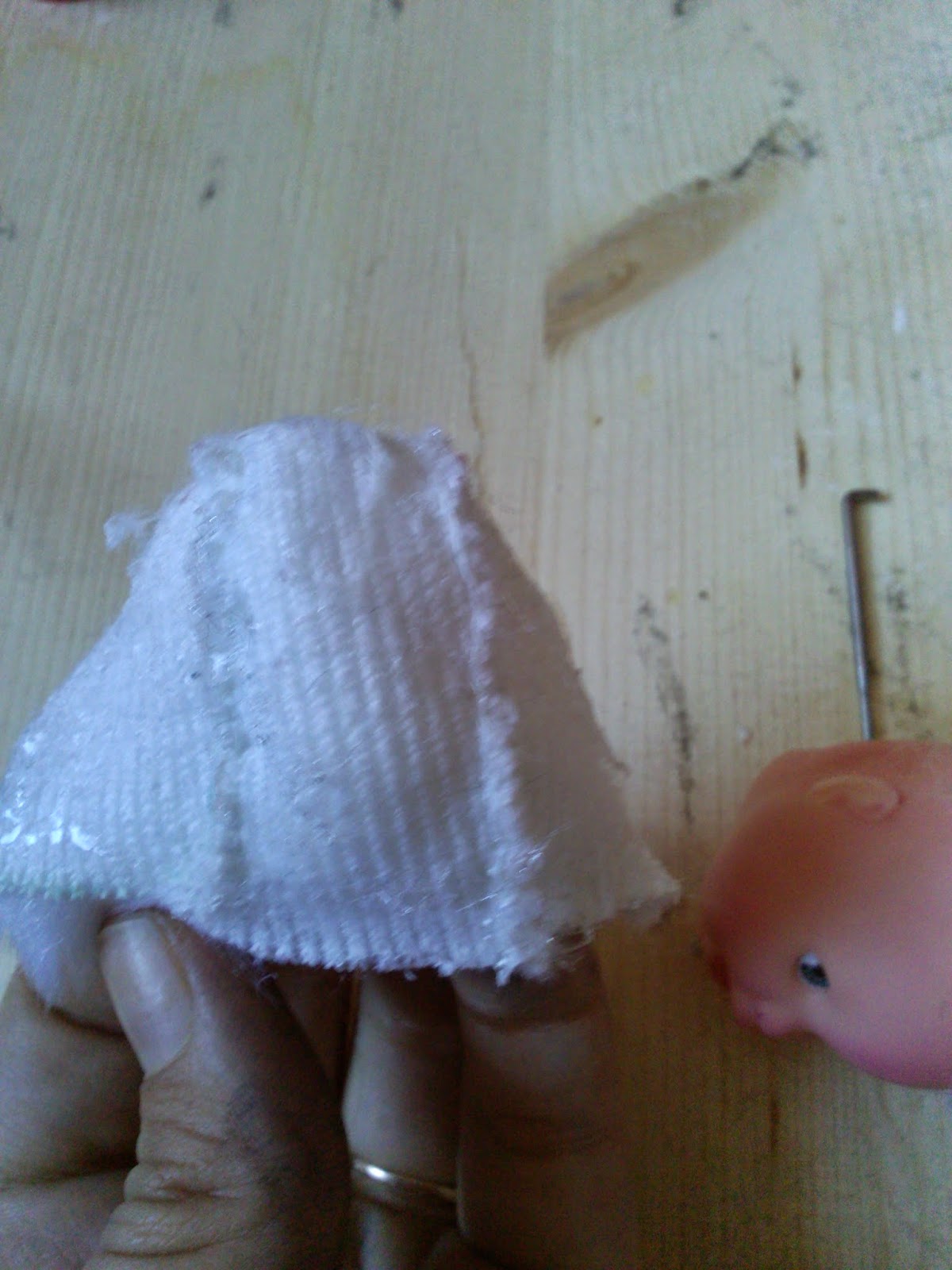 примеряем его с головушкой.....хорошо сидит (да вот на это этапе я и отрезала ушки у пупсика)
