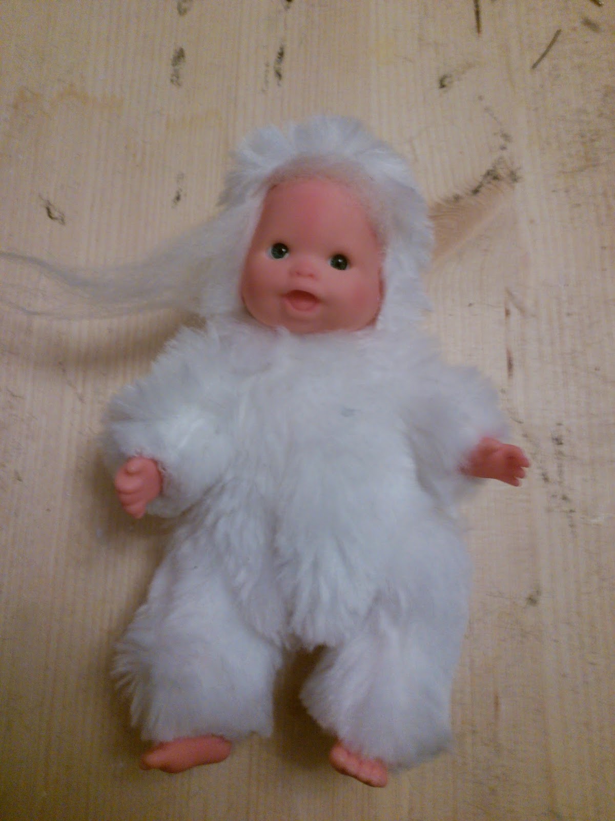 Не большая предыстория: гуляя с мужем по магазинам, я наткнулась на вот такого симпатичного пупсика, и не смогла пройти мимо...ну уж очень мне захотелось с ним что то сотворить (я потом его покрасила розовыми акриловыми красками...для более живого вида, да и волосики добавила)
