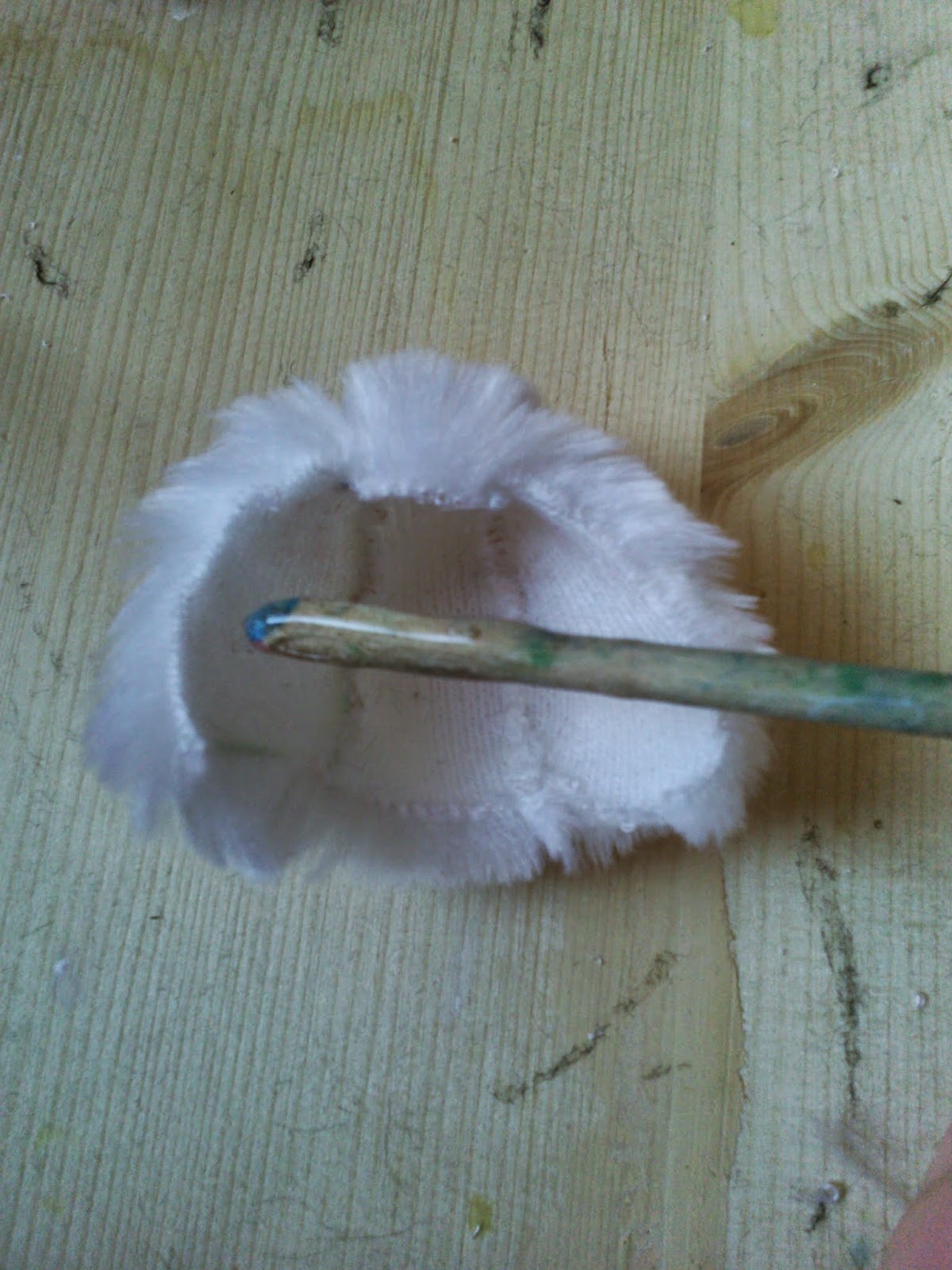 Промазываем нашу детальку клеем,  вставляем шею в дырочку, и выворачиваем на лицевую сторону!