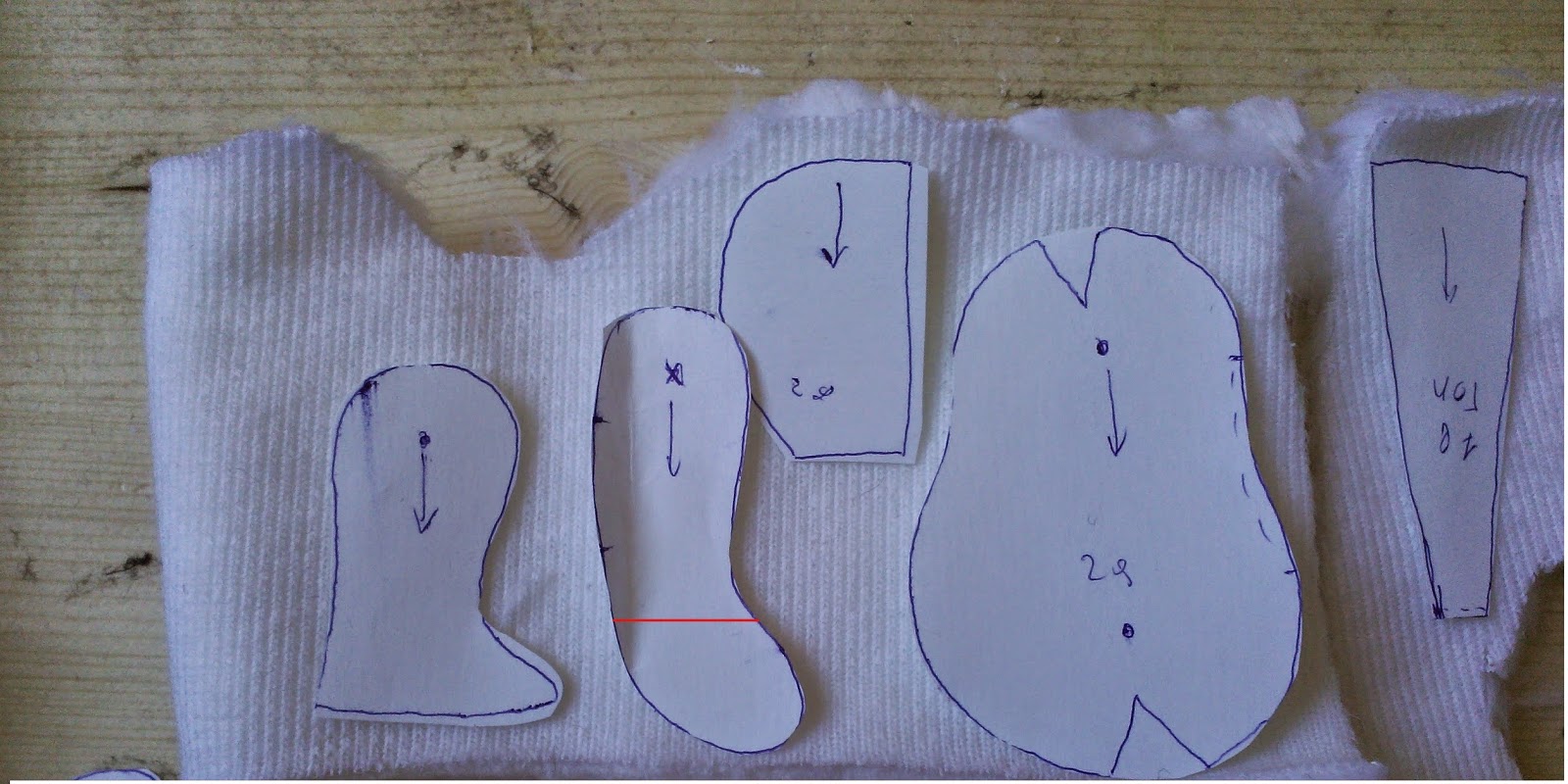 Складываем ткань пополам... переводим нашу выкройку,  сшиваем детальки...и не забываем про отверстия для набивание синтепоном тела,  рук, и ножек!