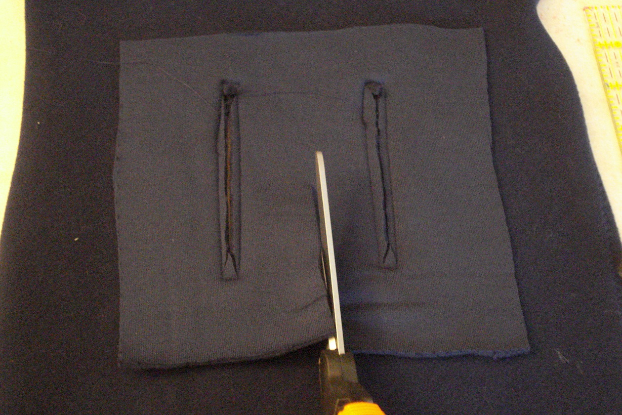 вертикальную — на расстоянии 1/3 ширины переднего полотнища от линии середины или через вытачку.