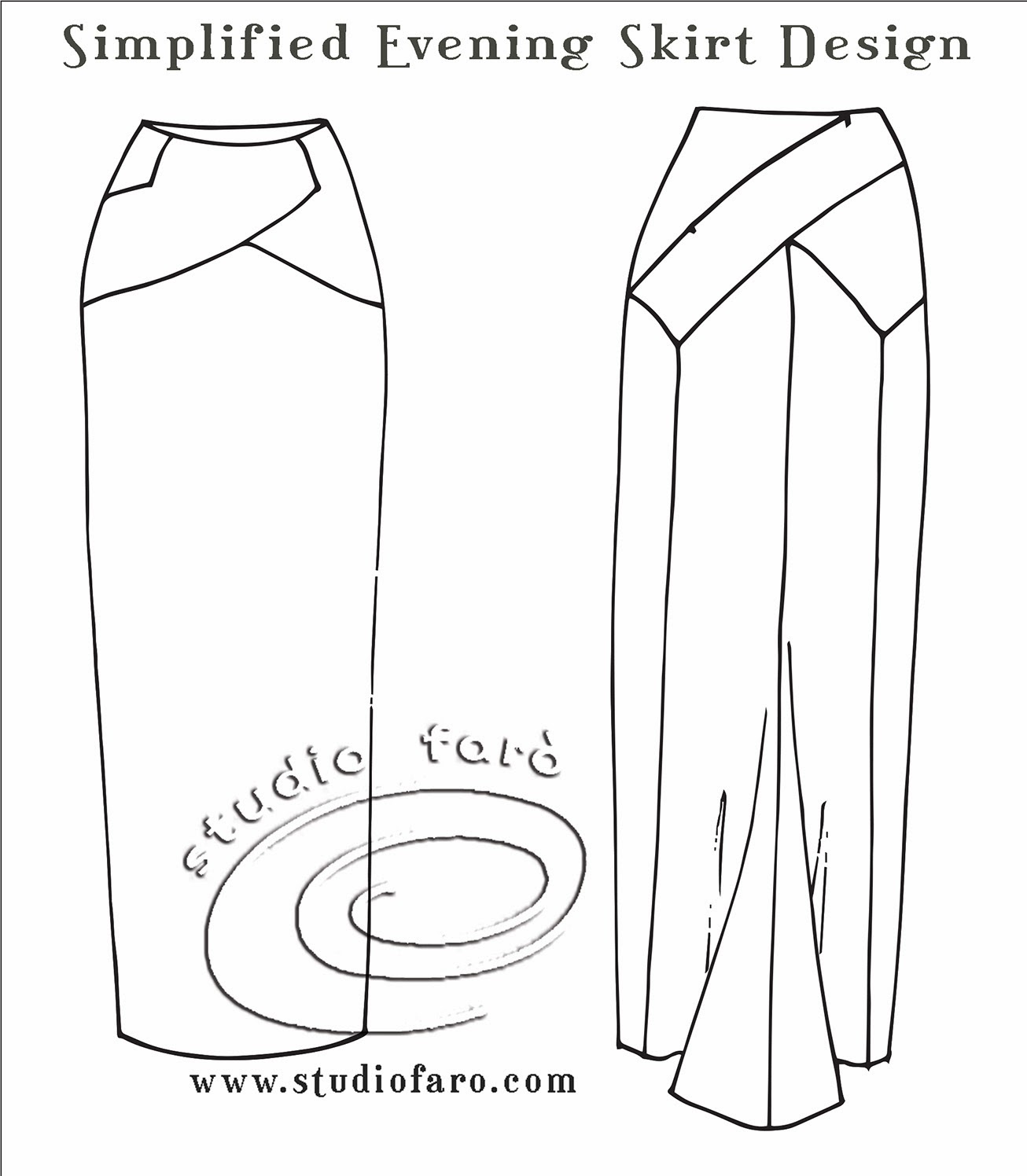 На переднем полотнище юбки проводим две вспомогательные линии разреза: