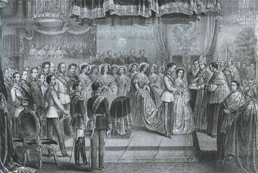 Свадьба Франца-Иосифа I и Элизабет 24 апреля 1854 года. Литография Винценца Кацлера, 1854.