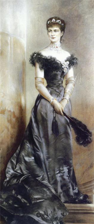 1882 Sissi wearing a shallow bustle and jewels by Hermann Nigg