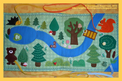 Панно теремок для развития мелкой моторики, зверята прячутся за дверцами, медвведь в дереве