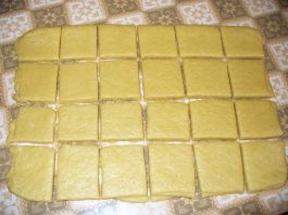 Разводим дрожжи в воде, добавляем майонез, соль и сахар. Добавляем частями муку и замешиваем мягкое, эластичное тесто.
