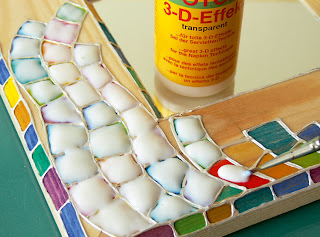 10. Перед последним покрытием охранным лаком, зеркало лучше из рамки вынуть. После этого непокрытые мозаикой части рамки покроем прозрачным лаком (например для декупажа).