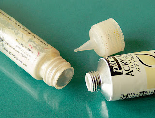 3. Мозаичные детали соединим акриловой краской с металлическим оттенком. Предварительно выдавим краску из тюбика в бутылочку.