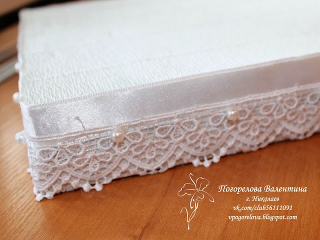 10. Декорируем основу атласной лентой, кружевом и бусинками, чтобы она смотрелась нарядно.