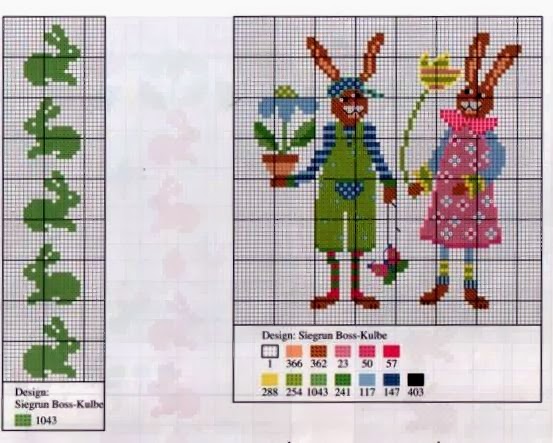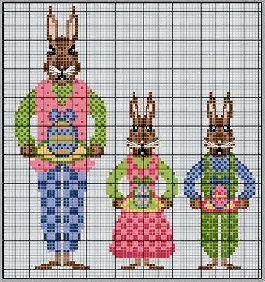 Прелестные пасхальные зайцы. Схемы вышивки крестом