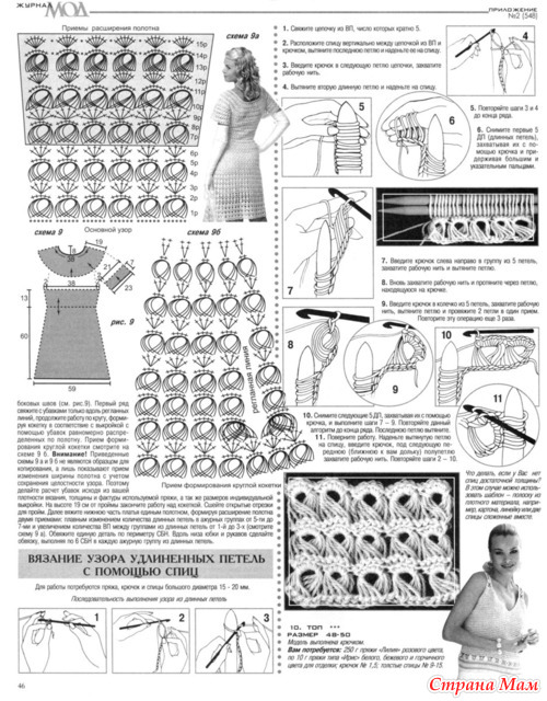 Плотность вязания: Основной узор: 23 п. и 45 р. = 10 х 10 см; лиц. гладь: 21 п. и 32 р. = 10 x 10 см.