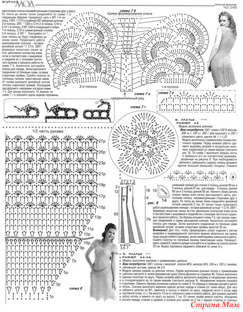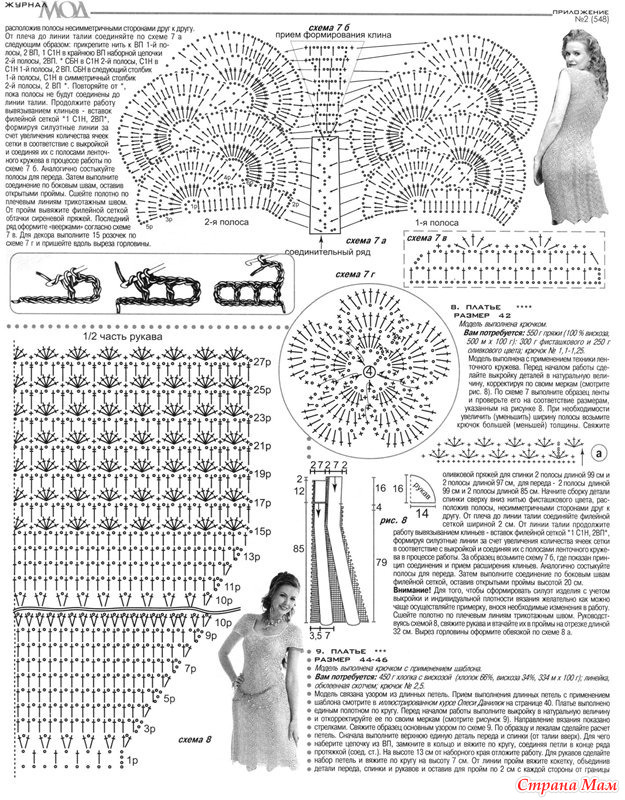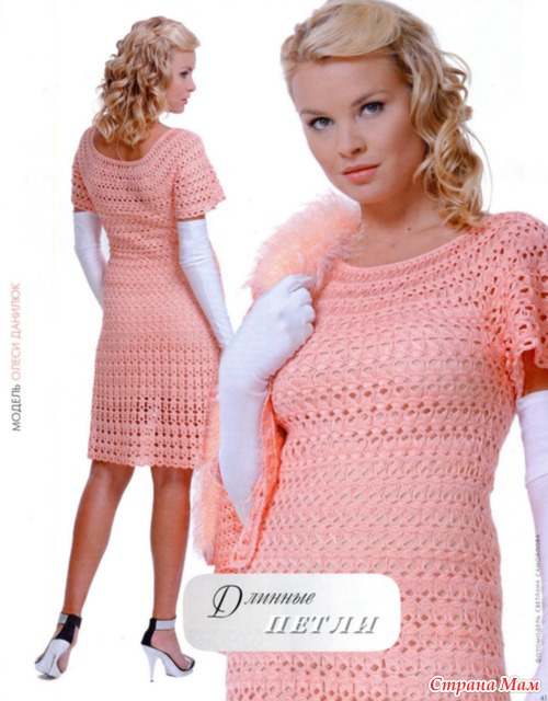Внимание! Платье связано из отдельных деталей, которые затем соединены с помощью переплетенных лент косым вязанием.