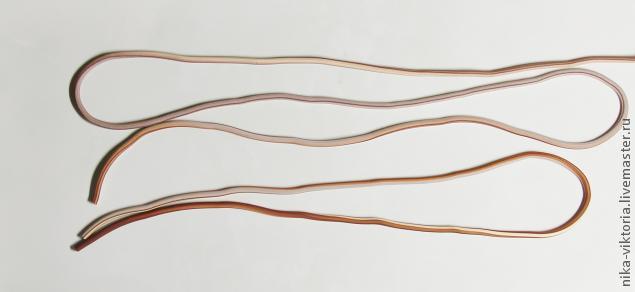 Три полоски бумаги h= 2 см более темного тона, чем лепестки цветка, нарезать бахромой. Бахрома должна быть не выше 1 см. Чтобы полоски не перерезались, я обычно прикладываю к полоске железную линейку и режу.
