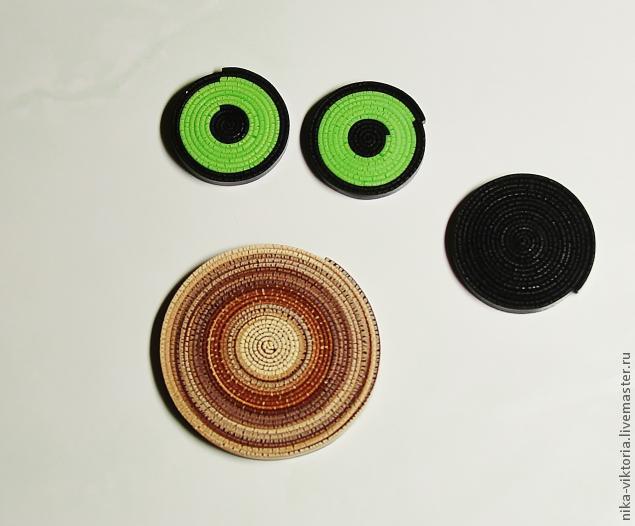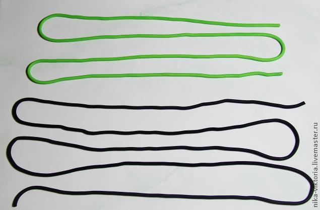 Две полоски шириной 3 см ( желтую и зеленую ) сложить вместе и нарезать мелко бахрому высотой 2 см и скрутить в тугой рол.