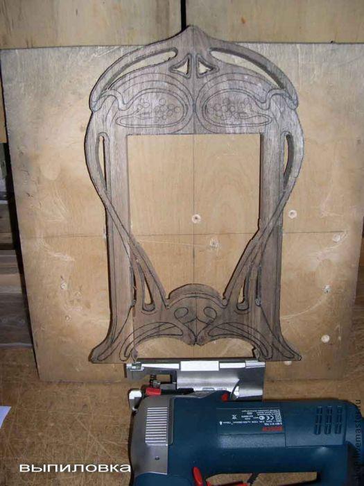 Так же для рамки я нарезала кусочки плотного картона, которые будут служить площадками для украшения салфеточными нитями. Все эти детали наклеила к раме клеем ПВА.