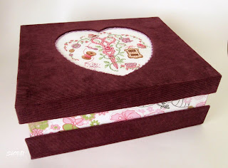 Ну, шкатулка получилась немаленькая. Даже коробка, наверное, - размеры 30 на 24 и высота 10 см. Зато туда переехали все мои запасы тесемок-ленточек и кружавчиков. Клеила я ее целых четыре дня. Кое-что взяла из французского картонажного блога , наконец пригодился мой весьма скромный французский... ))