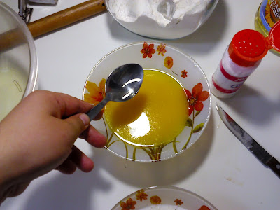 А в это время: растапливаем в микроволновке маргарин (или смесь маргарина и масла сливочного)