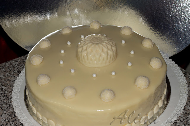 По правилам этот торт должен собираться в квадратной форме, но у меня не оказалось формы подходящего размера. Кроме того я не использовала диоксид титана для окрашивания глазури.