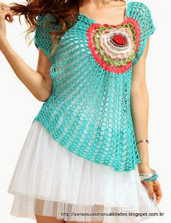 С лицевой стороны работы присоединить нить к краю выреза горловины и вязать по рисунку на 23 п. и эти петли снять на петледержатель, затем закрыть след. 4 п. (с правой стороны выреза) и продолжить формирование правого выреза горловины и плеча симметрично левой стороне.