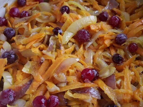 Затем рассол сливаем тщательно отжимая капусту, добавляем морковь натертую на крупной терке или фигурно нарезанную.Перемешиваем добавляем любимые пряности , я добавляю семена укропа.