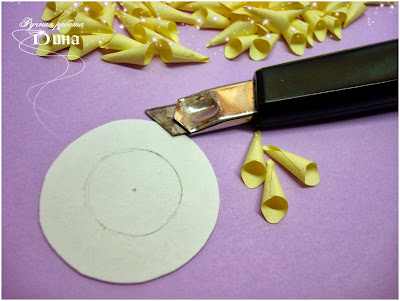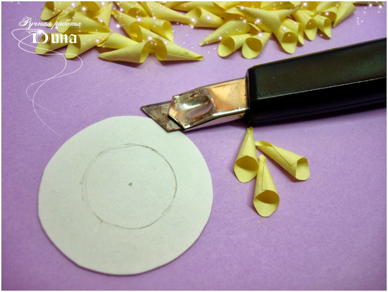 Сначала я поработала с воображаемой вазочкой. Для этого я взяла плафон от коммунистической люстры и приклеила ему донышко из картона.