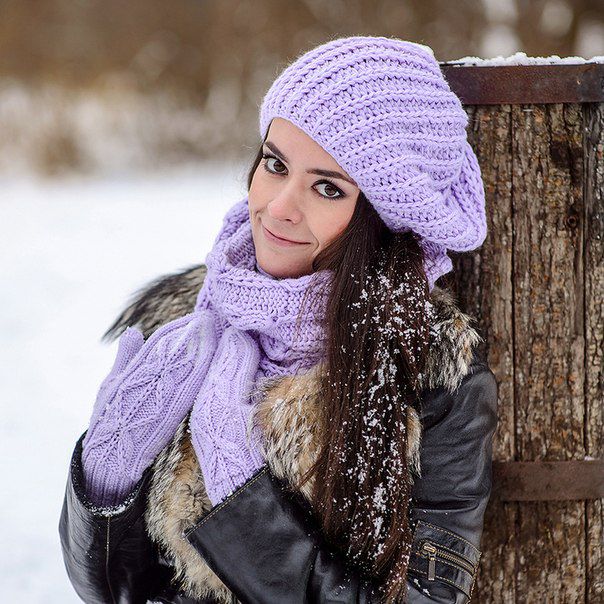 Идея №5. Вязаный комплект из берета, шарфа и варежек