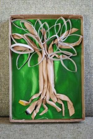 Все, работа готова! У нас получилось вот такое необычное дерево. Теоретически можно вырезать небольшие фотографии и вклеить их в лепестки или сделать лепестки в форме сердечек (их того же рулончика) и получится дерево к 14 февраля.