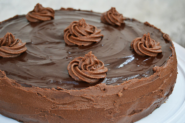 23. Бока обмазать кремом. Т. к. крем у меня еще остался, я заправила его в конд. шприц и украсила торт фигурными "шляпками".