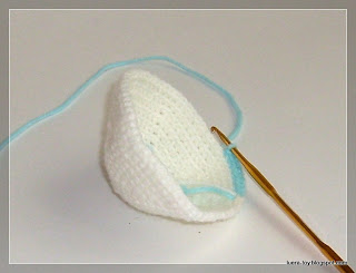 Повторить круги 1-16 (1-17, 1-18) внешнего носочка и внутреннего носочка, а также подошвы.