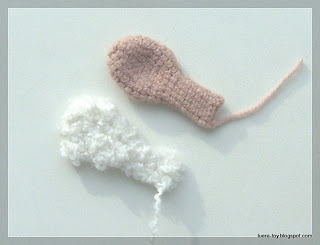 1. Вяжутся тапочки сначала (подошва и носочек), а ушки и шерсть изготавливаются отдельно, а затем пришиваются.