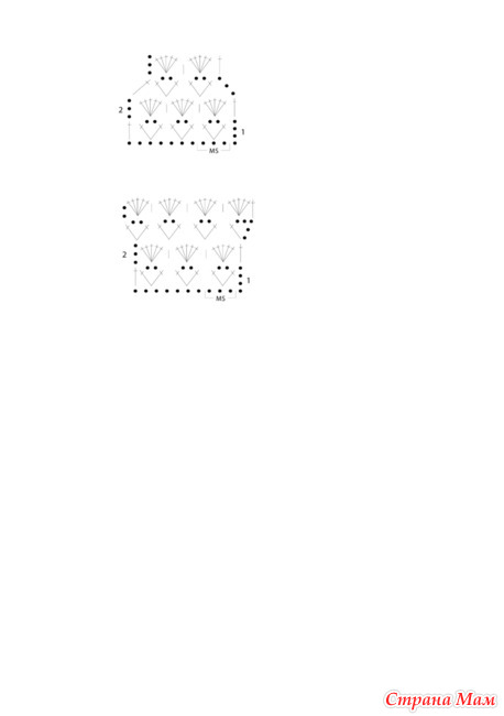 Ажурный узор (ширина 3 п.): вязать по схеме. Повторять раппорт и 1-й и 2-й р. Заменять 1-й ст. с/н каждого ряда на 3 возд. п. подъема и каждый ряд заканчивать 1 ст. с/н.
