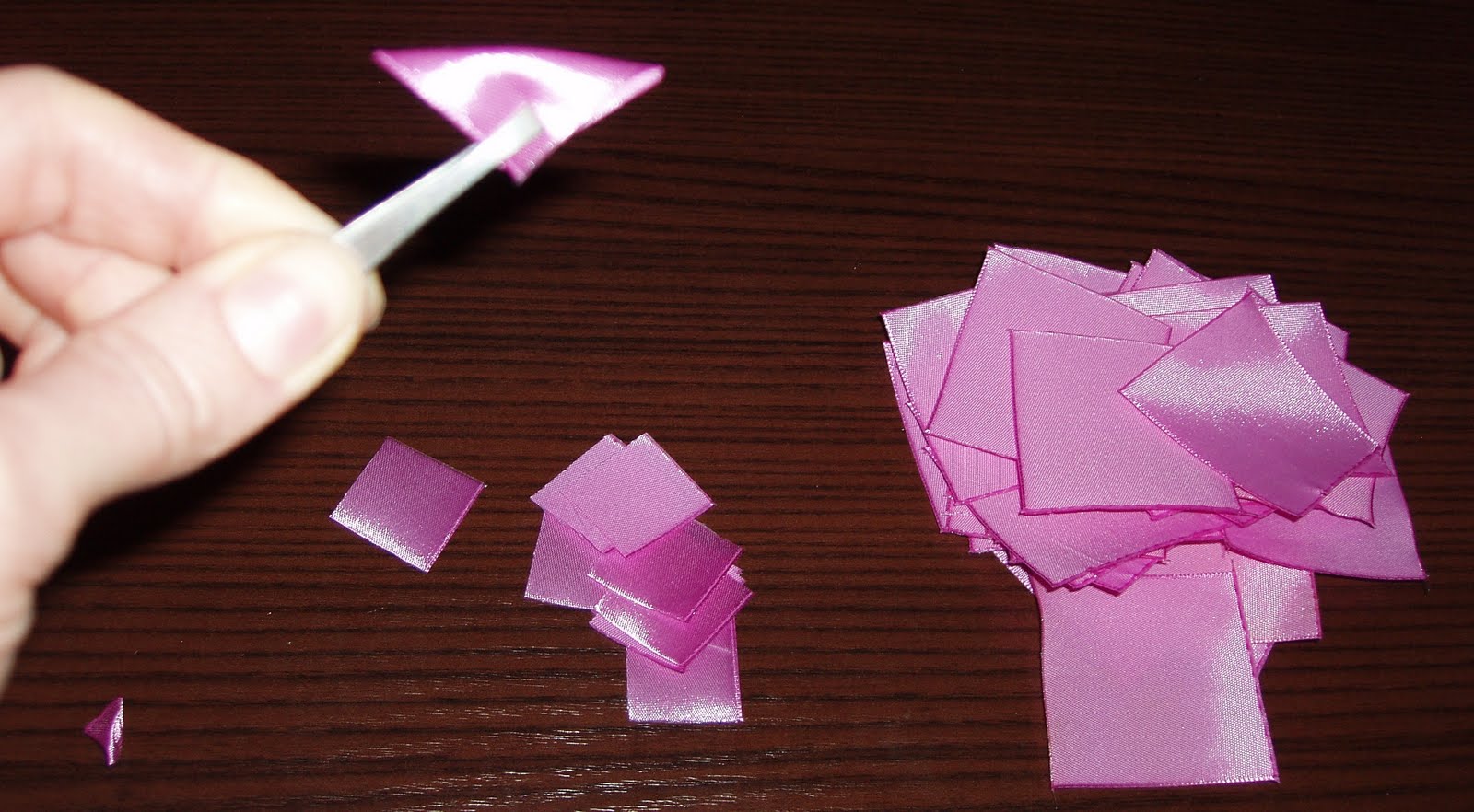ленту 5 см шириной и 10 см длинной складываем по диагонали
