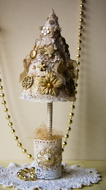 Эта ёлка была задумана ещё в октябре, тогда же были накручены цветы из канвы с люрексовой ниткой. Ну, а идея воплотилась в субботу.
