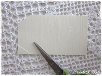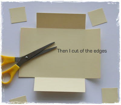 It is now time to make the pockets to put the tags inside. , . You can cut of small parts of all four sides. . And it is not nesassary to have any measurments. nesassary . I have just cut of paper very randomly:) But I will show you how I did it, so you have an idea. :) , , .