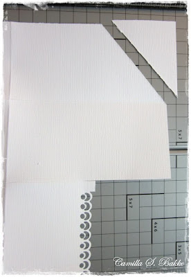 I first started with two sides, and cut off a bit, and then I used a borderpunch on the remaining part, so the edge looked nicer. , , , . Then I started with the two other sides. . First I cut of a triangle. . I then took the cut-off part and placed it on the other side, so the side would look the same -only opposite from eachother. , , .