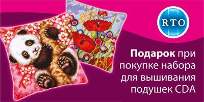 Подушку вышить быстро и легко - крупный крест, напечатанный рисунок. Не забудьте получить подарок за покупку на каждую подушку: удобный весенний органайзер для хранения ниток. |