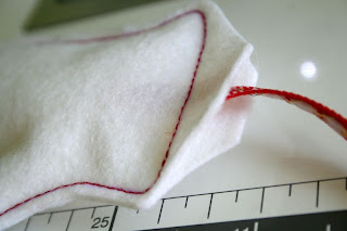 Пришиваем верх и низ друг к другу(на этом этапе можно по желанию закруглить уголочки),оставляем отверстие для выворачивания. Срезаем припуски на швы (только!) синтепона близко к строчке.