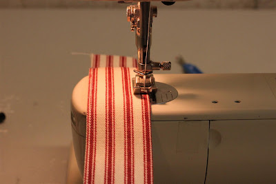 12. Loop the fabric through the metal rings and stitch the fabric to itself attaching your handle.