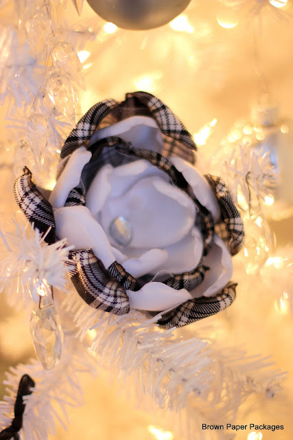 Увидела сегодня очень красивую идею - использовать цветок из ткани в качестве елочного украшения. Мне очень нравится! Посмотрите!
