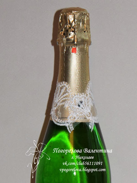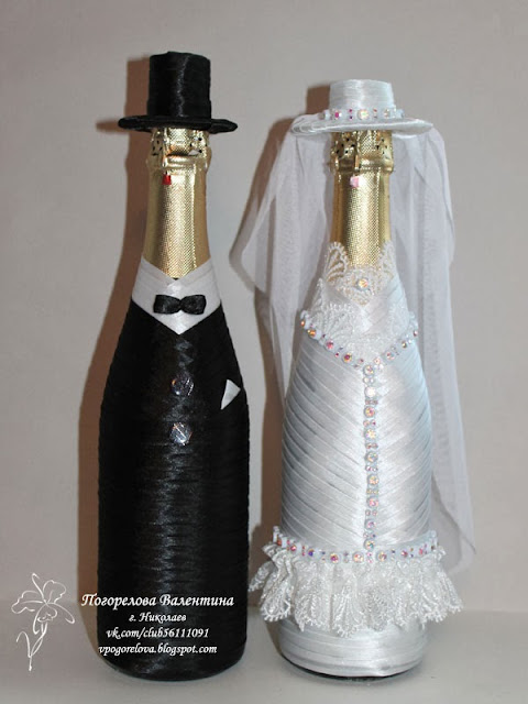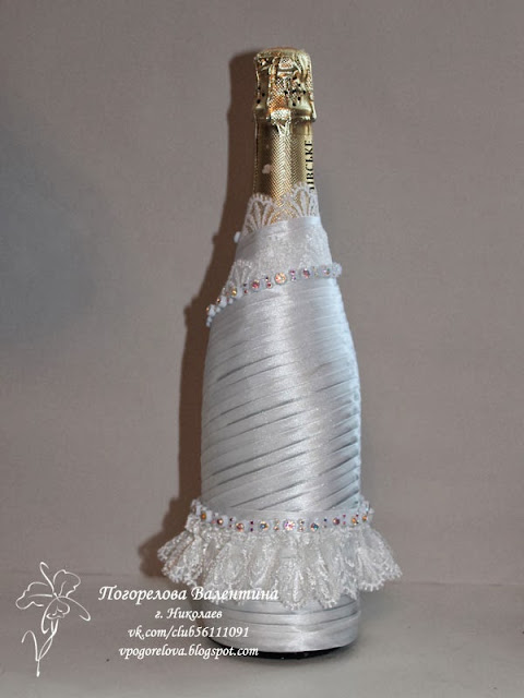 На Невесте сквозь ленту просвечивает зеленая бутылка. Поэтому не повторяйте моих ошибок и клейте ленту плотно-плотно друг к другу, чтоб не было таких просветов.