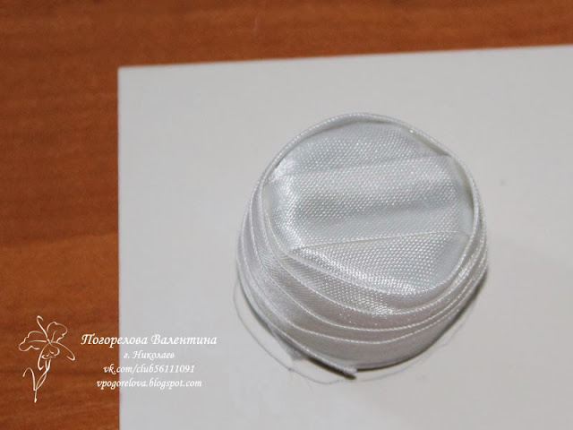 20. Обматываем "бублики" лентами. Для надежности иногда смазываем картон клеем, чтобы лент на съезжала.