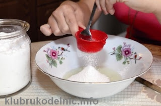 3. Перед началом украшения глазурь разделим в две миски и поставим в какую-нибудь посуду, которую нужно закрыть крышкой. Готовая глазурь должна иметь такую консистенцию, чтобы она понемногу стекала с ложки - тянулась. Для украшения всегда нужно использовать только что приготовленную глазурь, более старую, хотя бы и приготовленную пару часов назад, использовать не рекомендуется, не получится узор.