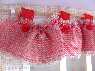 Шьем и вешаем занавески. В качестве карнизов я использовала деревянные шампура. Вклеивала их прямо в стены, проколов дырочки.