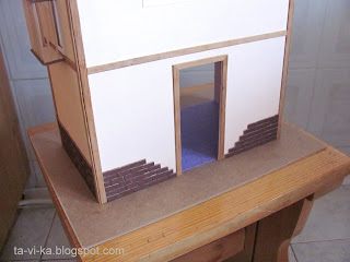 Если нужно напольное покрытие, клеим сразу, до вклейки пола в домик. Я, в качестве ковролина использовала фетр.