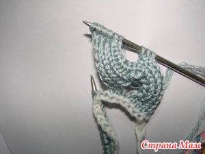 6-й ряд: повернуть работу на изнаночную сторону и вязать 6 изнаночных. Повернуть работу.