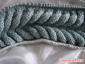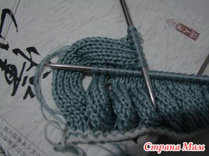 Возобновить вязание 40п. рез. 1Х1, равномерно приб. в 1-м р. 14 п.=54 п. Вяз. 4 р. и сн. все п. на вспом. спицу. Второй носочек вяз. так же.